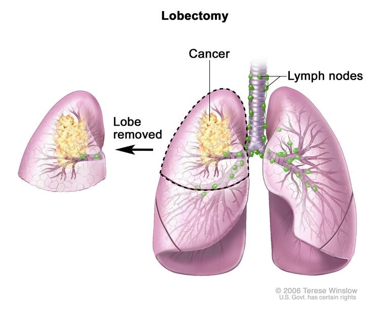 - Surgery (wedge resection, segmental resection, sleeve resection, lobectomy, or pneumonectomy).