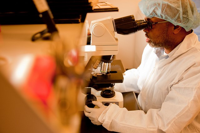 Figure 3: Dr. Ismael from William Osler Health System reviews a lung biopsy under the microscope